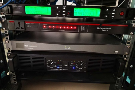 某公司用于展覽展示的場地有60㎡左右,客戶要求滿足清晰的語言擴聲環境,無嘯叫、無噪音干擾,而且綜合考慮成本及產品性價比。在投影機2側各配置1只Valleysound品牌旗下TC系列TC100全頻音箱作為擴聲,配置1臺功放PA240,1套真分集無線手...